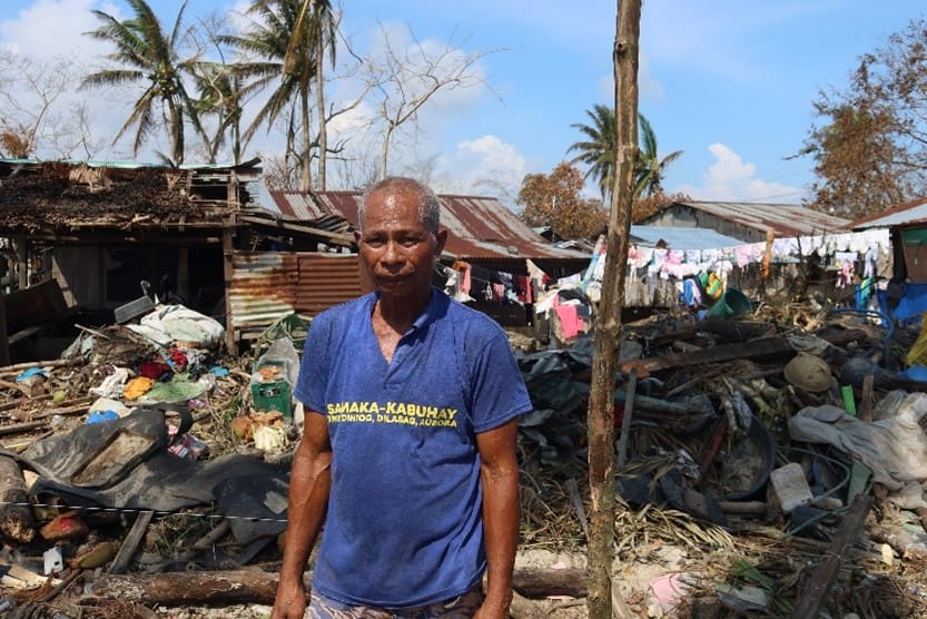 Sabilyo, 57, a fisherman in Aurora province, told Islamic Relief: “My family’s only source of income, our boat, was split in half by the storm’s fierce winds and waves. I don’t know where to start. My house is washed out, and my boat is gone. I just hope someone can help us start again.”