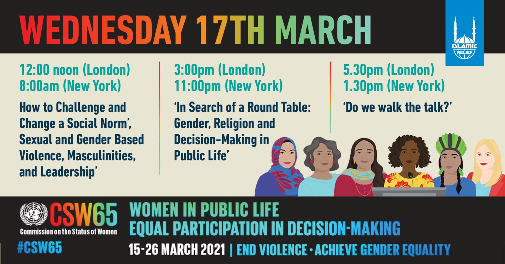 With CSW65 held online, Islamic Relief were able to bypass geographical barriers and include more amazing women that we work with in all our events. From peacebuilders in Pakistan, Kenya and the Philippines to partner organisations in Rwanda and London, our speakers and panellists highlighted not only their personal, professional and organisational experiences, but also the challenges they faced in their journey to fully and effectively participate and make decisions in public life.