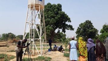 Moussa Goita films a vegetable garden set up by Islamic Relief in Safecore village, Ouelessebougou.