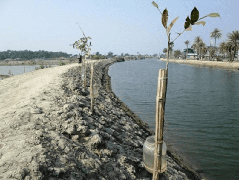 The 21 earthen roads – which span almost 10 kilometers – were constructed to re-connect the community through our relief and recovery programme. Most of the surface water in this area is salt, but the Ward Disaster Management Committee works hard to irrigate the plantations and has appointed local volunteers to care for the trees.