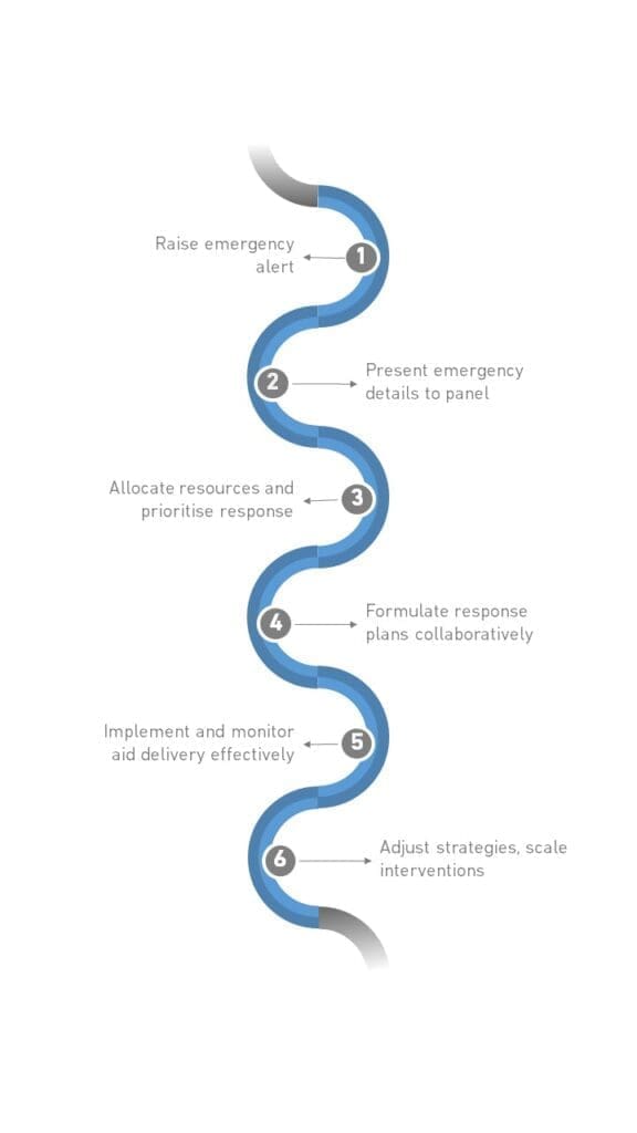 The panel’s role is to comprehensively evaluate the situation, assess needs on the ground, access, identify gaps in support, review fund availability, and consider media engagement. This collaborative approach ensures well-informed decisions drawing from diverse perspectives and expertise.