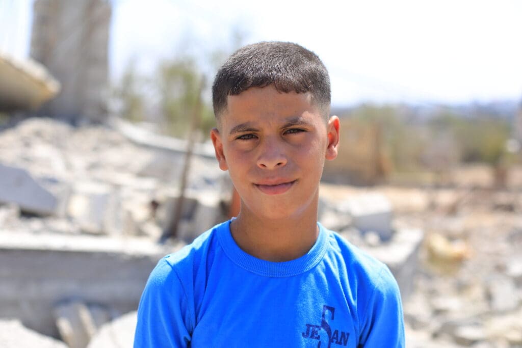 In the past 2 years, Mostafa’s family have been forcibly displaced 5 times. The first instance saw their family home destroyed by Israeli missiles, forcing them to flee without any belongings.