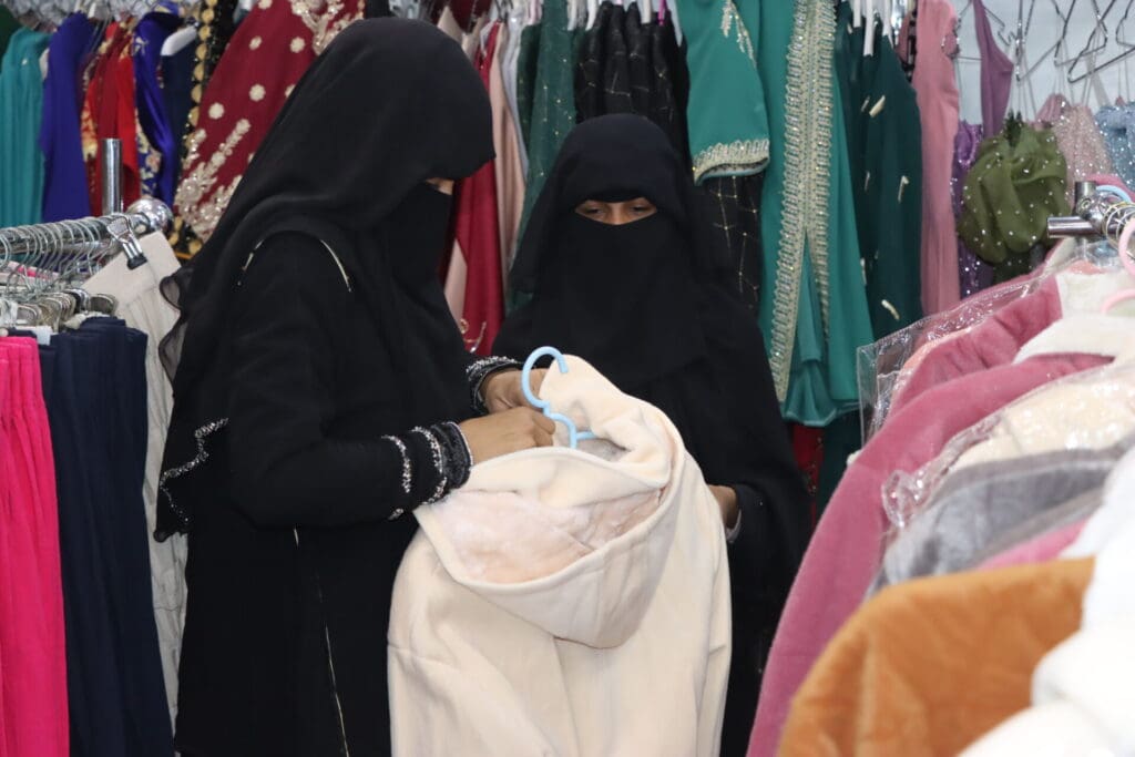 Ghaibah and her daughter Atheer pick out a warm coat from an Islamic Relief distribution centre as part of our Winterisation Programme