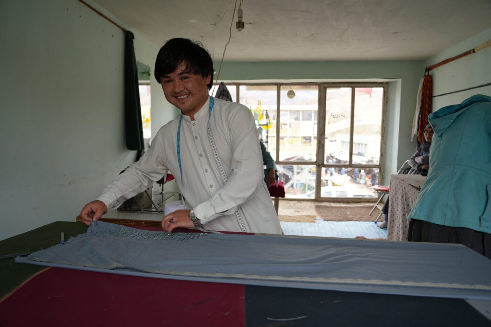“Suddenly, people came to embrace my business. I was also putting a lot of effort into being as fashionable as possible. I’ll look at online clothing adverts to see what other big tailoring shops in urban cities produce and emulate them. I was now making 8,000 Afghanis (approx. £87). I started to support my family with almost all their basic needs, such as food. Despite paying a monthly rent of 2000 Afghanis for my shop, I find this much more rewarding than working in people’s farms,” says Sadiq.