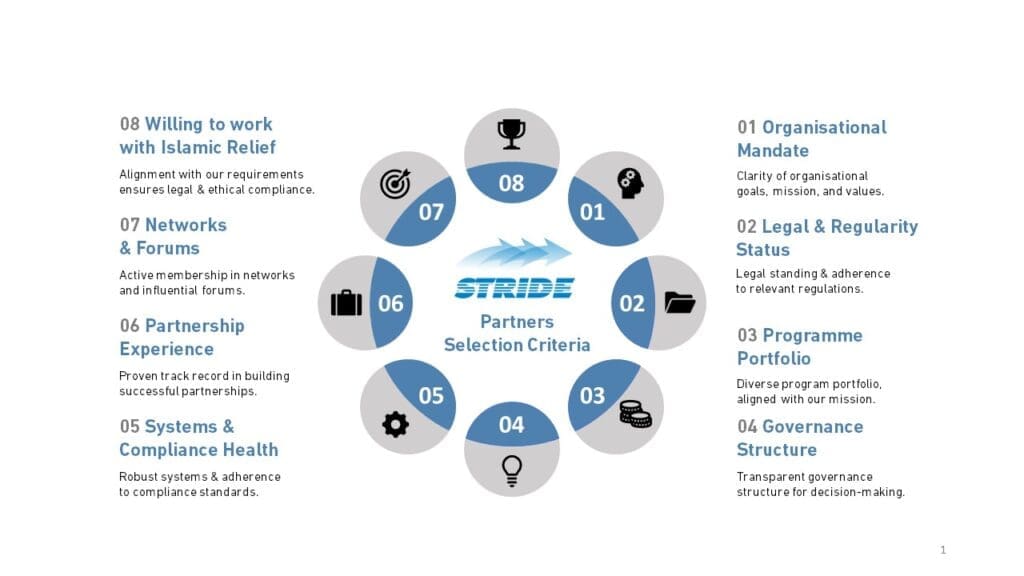 STRIDE emerged as a dedicated programme aimed at forging partnerships and bolstering the capabilities of local organisations outside of the partnerships formed during emergency responses. It stands as Islamic Relief’s most extensive and dedicated investment in identifying local organisations poised to benefit from an organisational capacity-strengthening approach, coupled with an emphasis on enhancing knowledge of humanitarian standards.