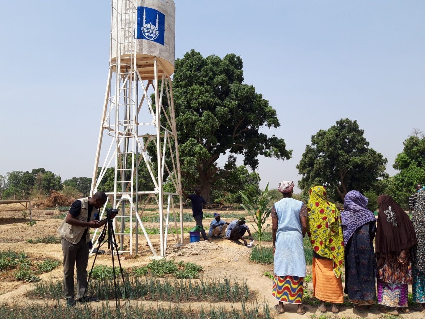 Moussa Goita films a vegetable garden set up by Islamic Relief in Safecore village, Ouelessebougou.
