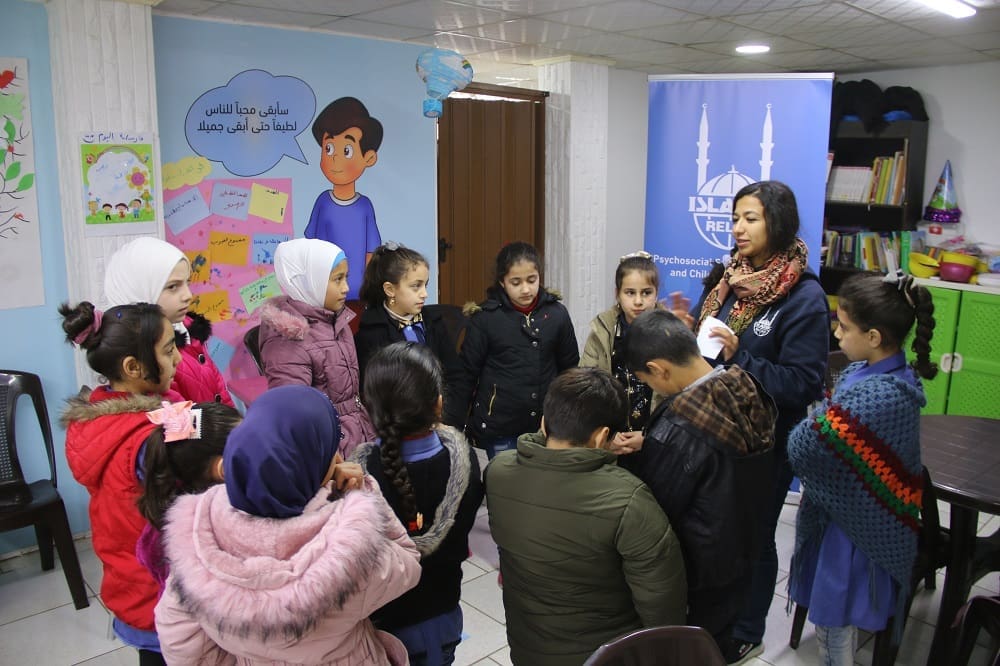 A child protection session with refugee children run by Islamic Relief in Jordan last year.