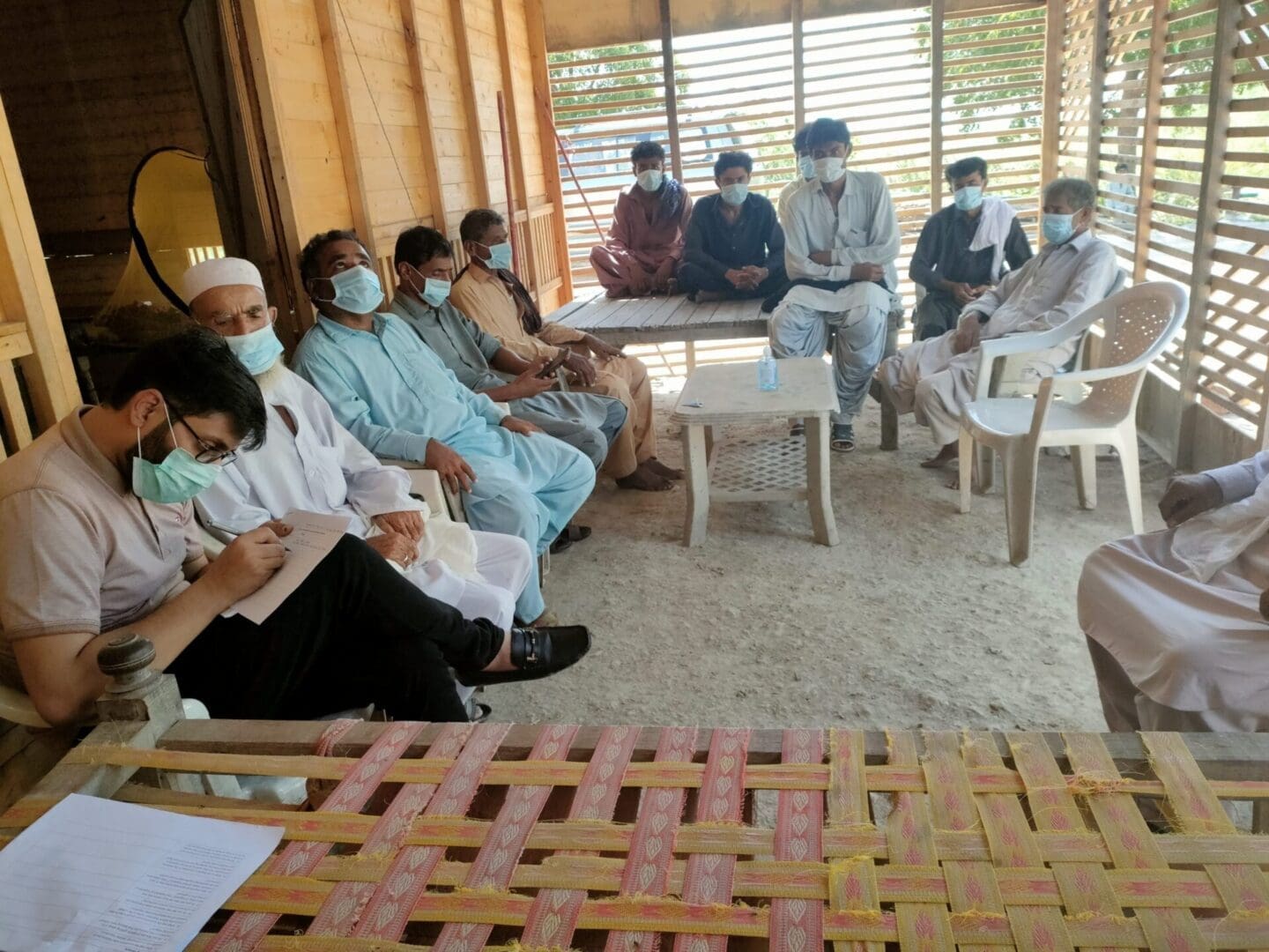 Islamic Relief meets with people forced to move to Kharo Chan to escape the effects of sea intrusion.
