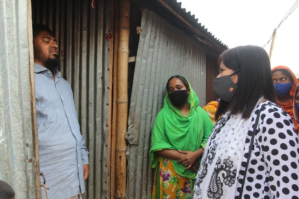 Sharmin Ruba shares health information with people living in Jheelpar slum, Dhaka.