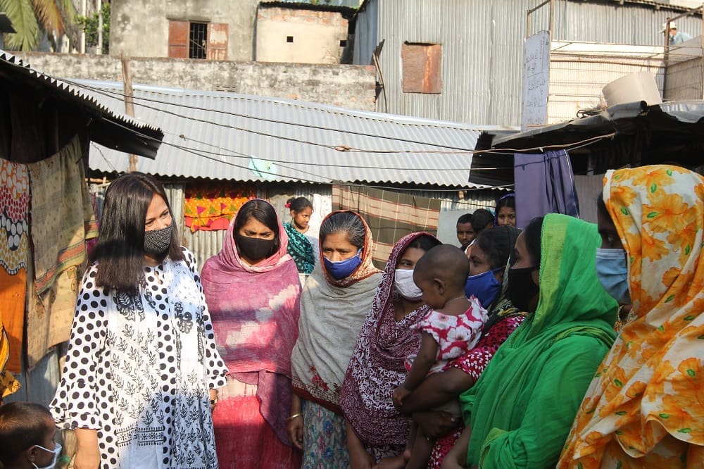 Sharmin Ruba shares health information with people living in Jheelpar slum, Dhaka.